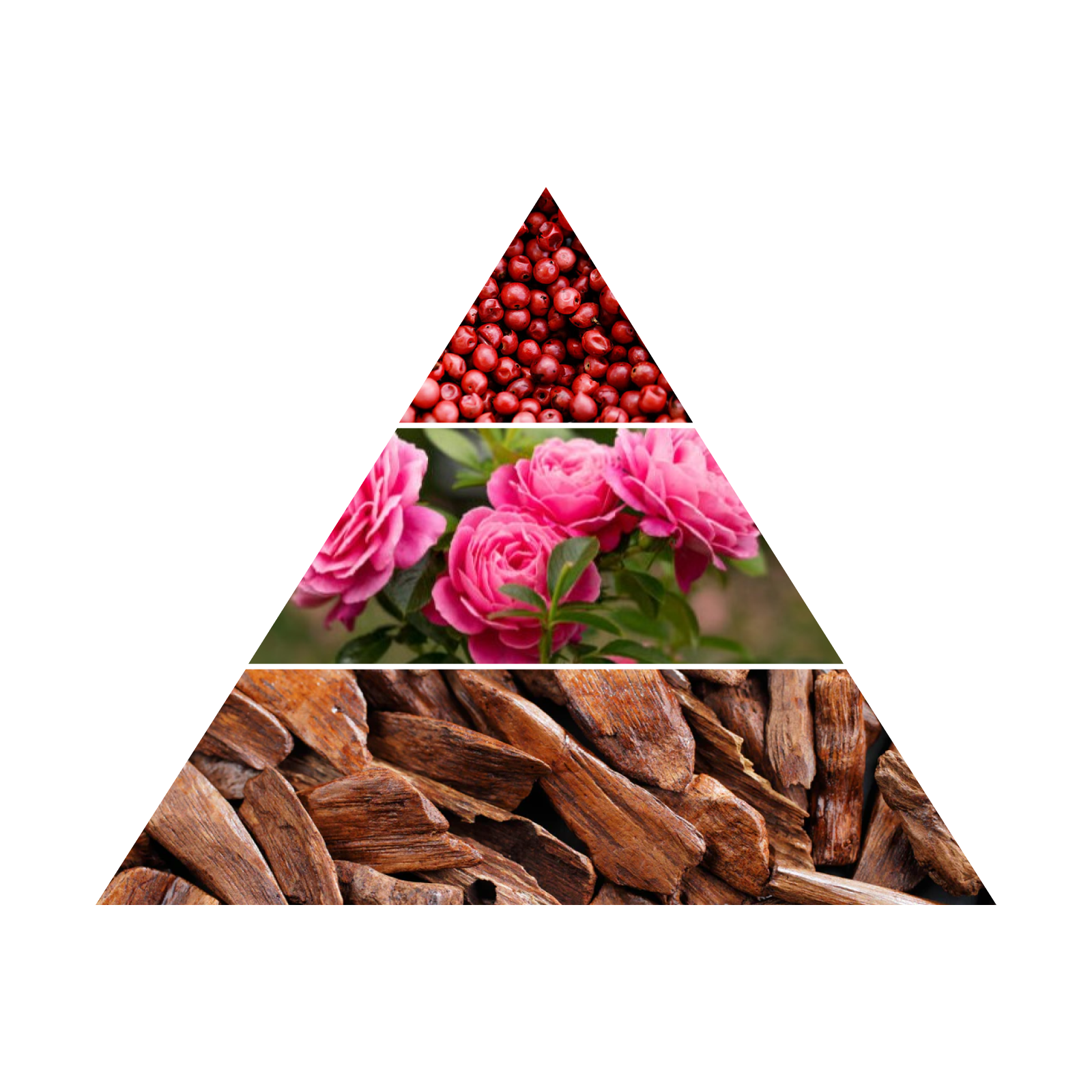 تركيبة عطرية مكثفة من الزهور والتوابل، تزخر بالحياة النابضة. يأتي بأفضل افتتاحية مع نوتة من ورد الصندل، تستكمل توهّجها مع الفلفل الوردي في قلب هذه التركيبة الفريدة، التي يلفها الباتشولي وخشب الصندل كوشاح فاخر دافئ، ليمنح العطر بعداً آسراً من الفخامة.